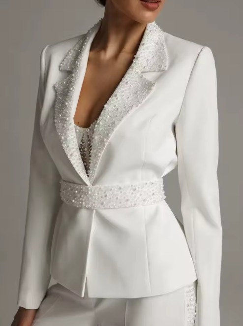 Jolina bridal pantsuit, civil ceremony outfit set with pearl appliqués