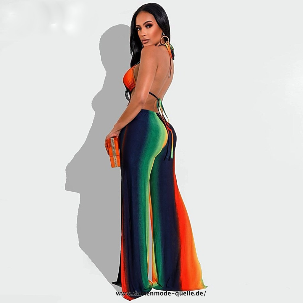 Damen Regenbogen Cut Out Jumpsuit Sommermode