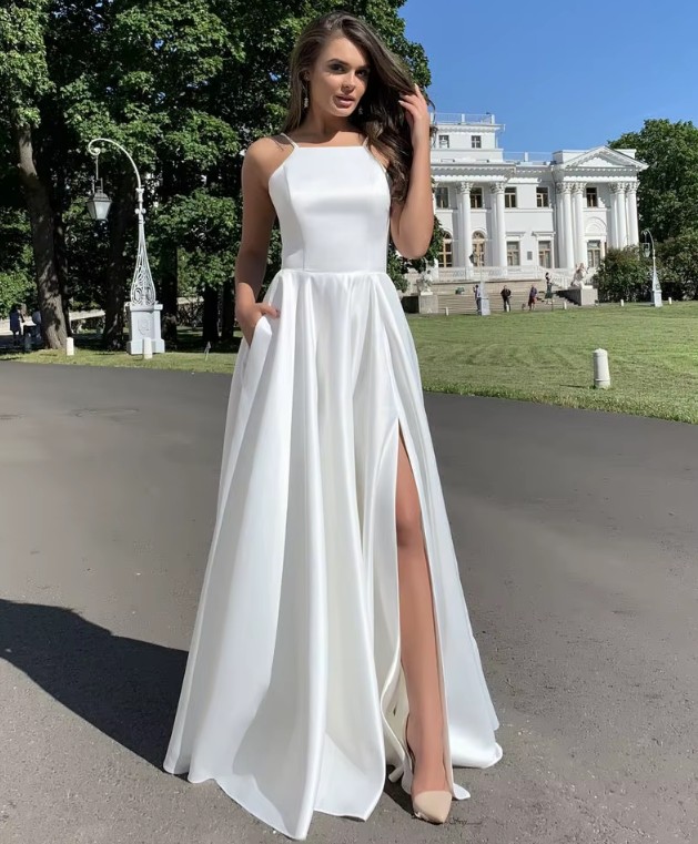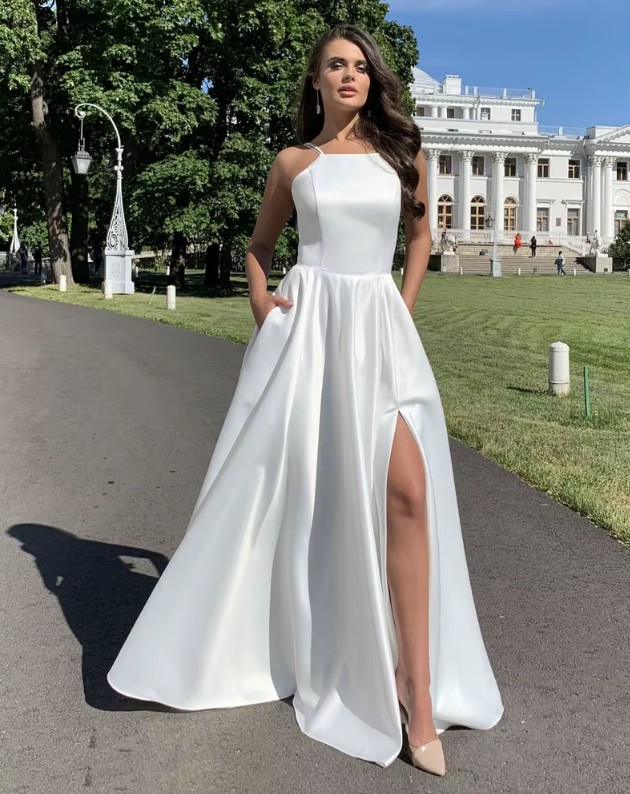 Satin Cut Out Civil Wedding Dress Fabienne Lang in White