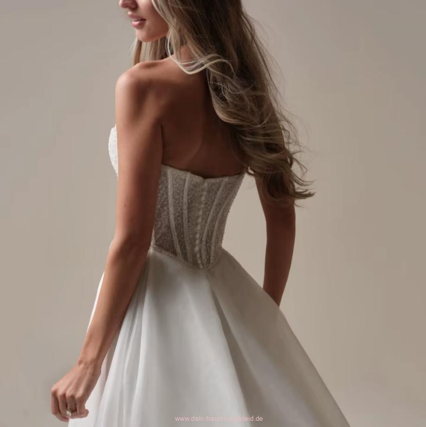 Schulterfreies A Linie Brautkleid Callisto mit Pailletten Applikationen und Schleppe