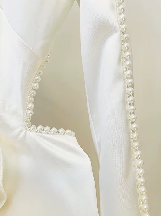 I-line bridal two-piece Johanna civil ceremony outfit with 3D flowers and pearl appliqués