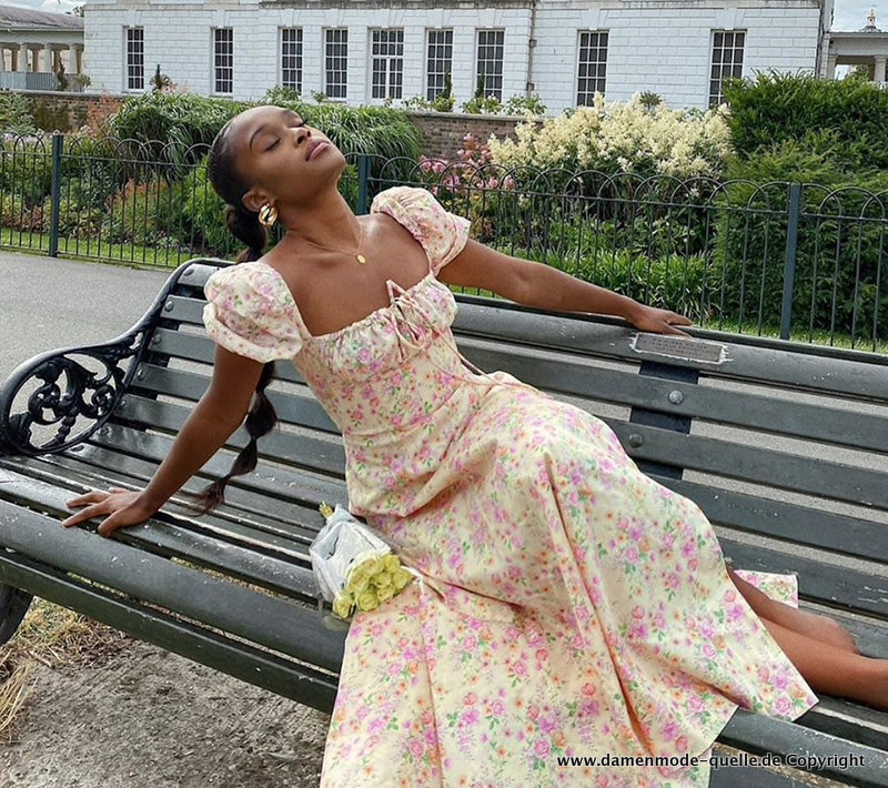 Sommermode Elegantes Boho Sommerkleid mit Blumen