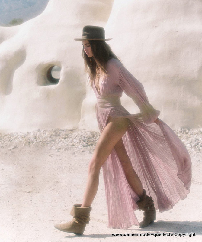 Baumwolle Sommer Maxikleid in Lachs mit Sexy V Ausschnitt