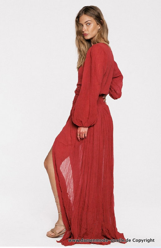 Baumwolle Sommer Maxikleid in Rot mit Sexy V Ausschnitt