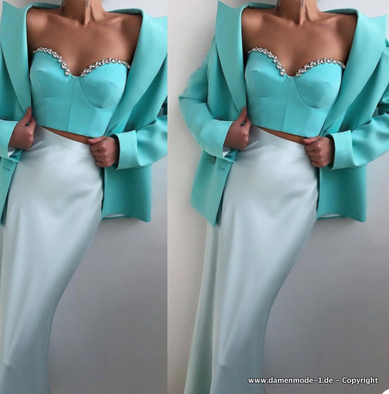 Eleganter Damen Blazer mit Top im Set Türkis