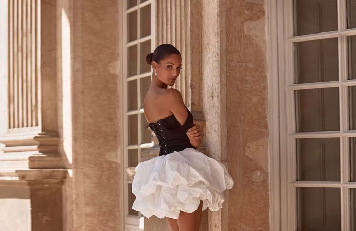 Off-the-shoulder sexy mini wedding dress Ilaria Black and White