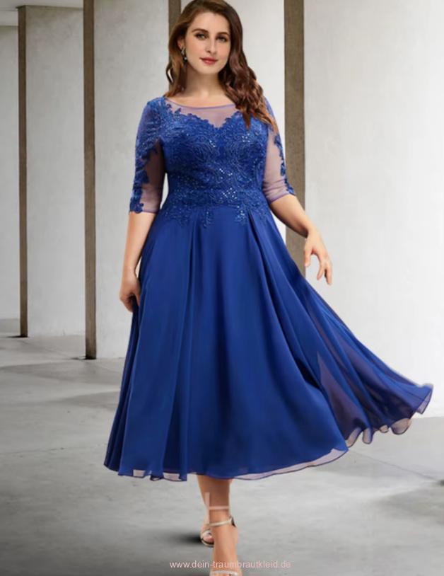 A Linie Chiffon Kleid Camellia Elegant für Hochzeitsgäste in Dunkelblau Wadenlang
