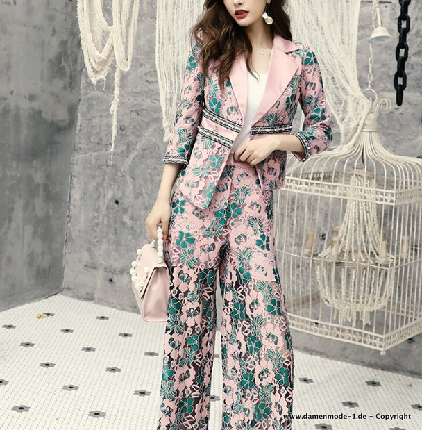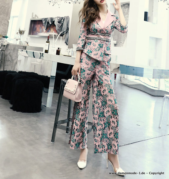 Eleganter Business Hosenanzug für Damen mit Blumenmuster