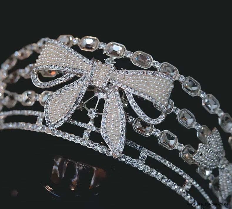 Crystal bridal crown Fatme in silver with rhinestones and pearls