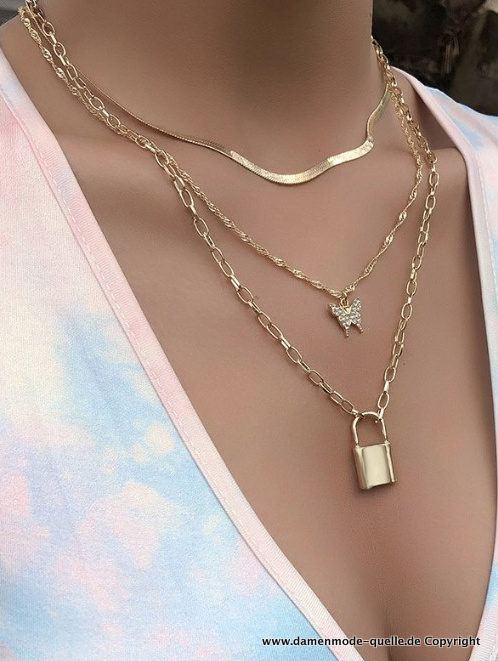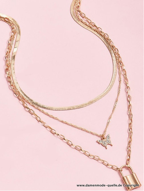 Damenmode Modeschmuck Schmetterling Schloss Halskette in Gold