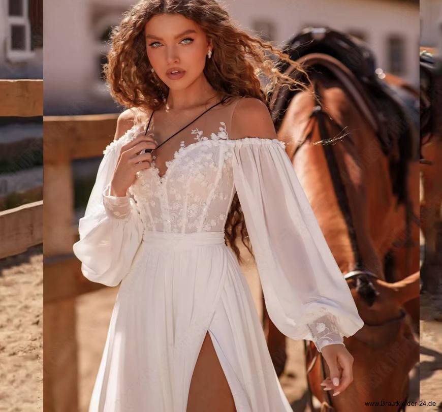 A Linie Langarm Brautkleid Fedra mit Spitze und Sexy Schlitz
