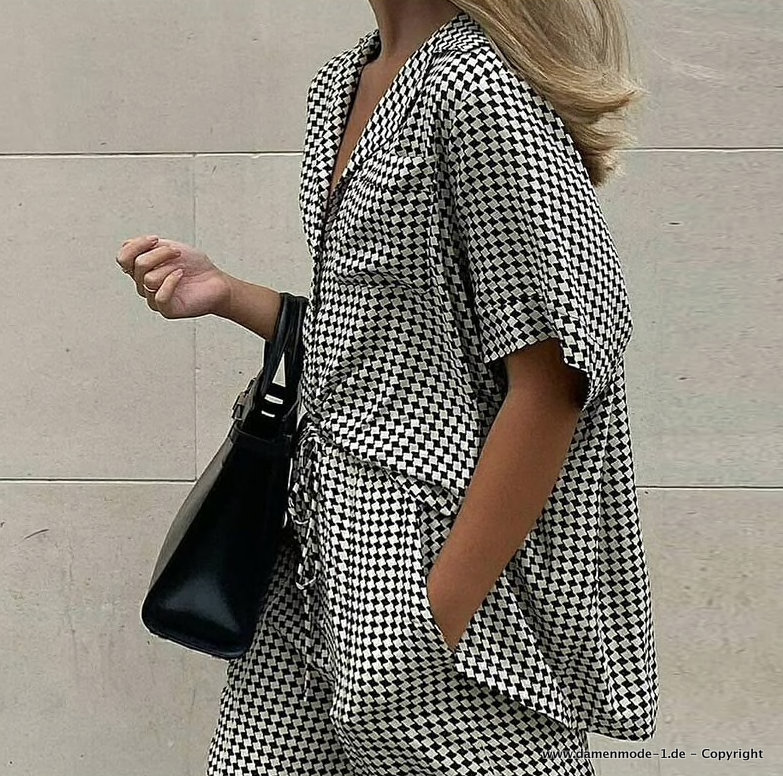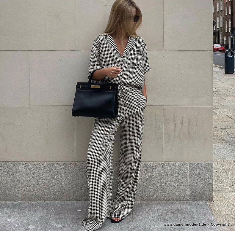 Damenoutfit Zweiteiler Hose mit Bluse Schwarz Kariert