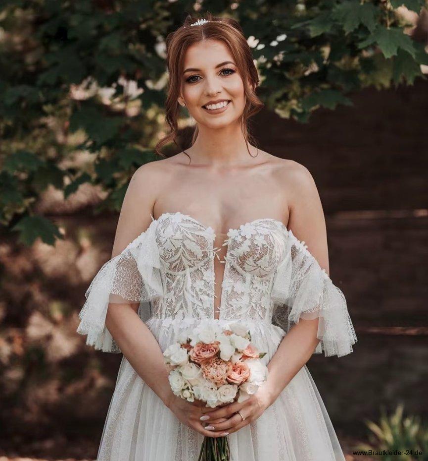 A Linie Boho Brautkleid Fatima Schulterfrei mit Lingerie Oberteil und Spitze