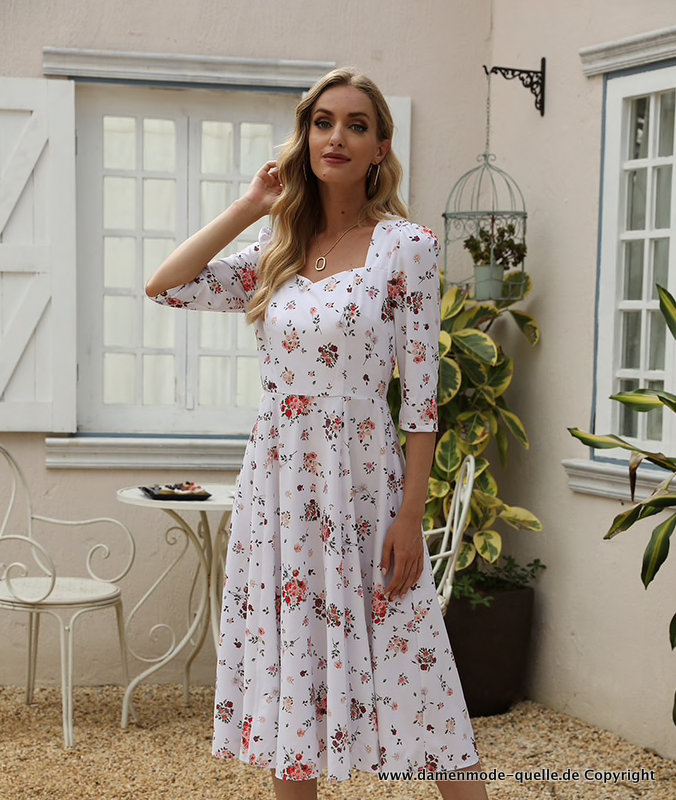 Süsses A Linie Maxi Sommerkleid in Weiß mit Blumenmuster