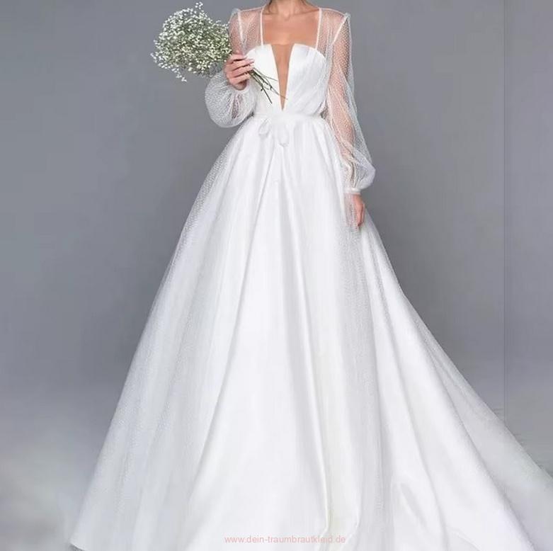 A Linie Brautkleid Christin Schlicht mit Tüll Ärmel