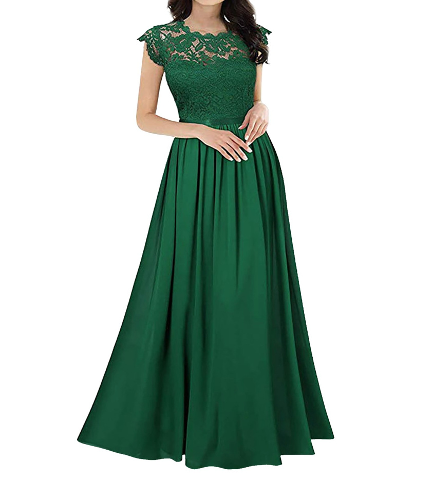 Elegantes A Linie Kleid für Hochzeitsgäste in Dunkelgrün mit Spitze