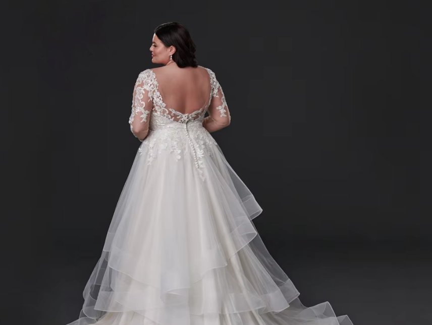 Langarm Curvy Brautkleid Klassisch mit Blumen Spitze