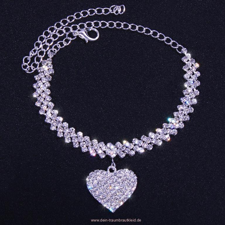 Strass Fußkettchen Cher für die Braut in Silber mit Herz