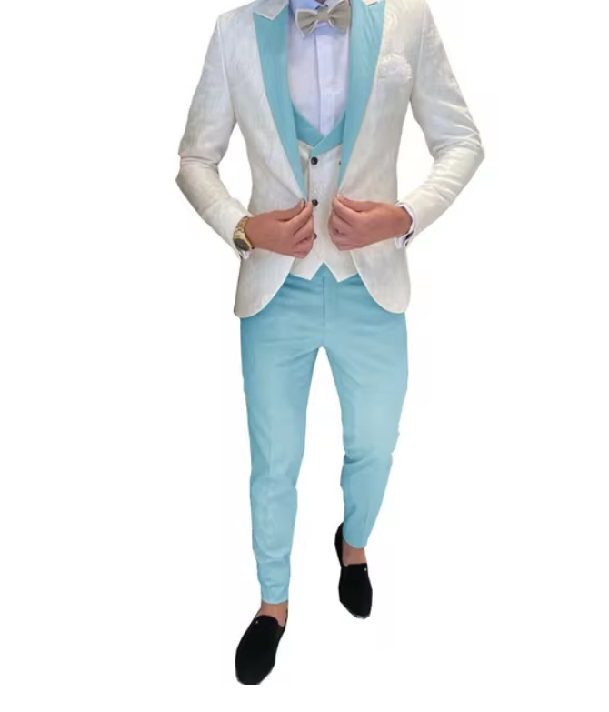Arendt men’s suit for the groom and wedding guests in light blue and white, three-piece.