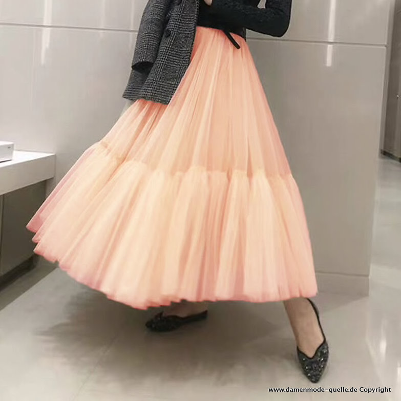 Plissee Tüll Sommerrock Lang mit 3 Schichten in Apriko