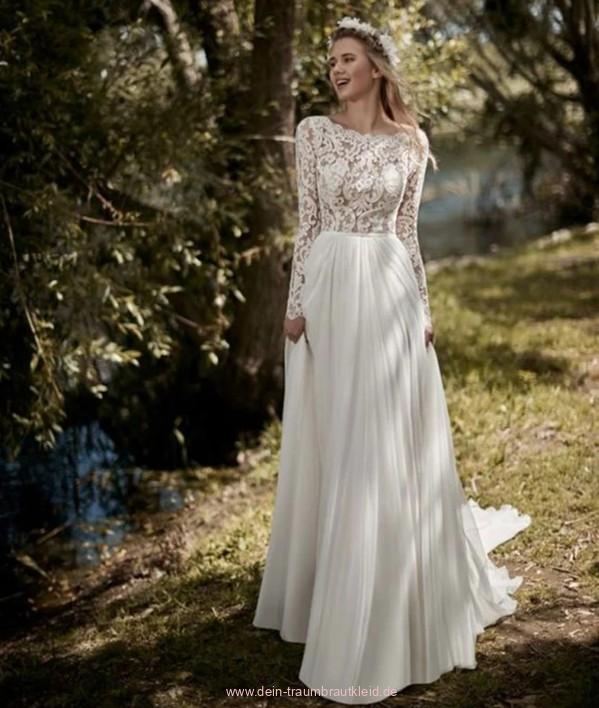 A Linie Chiffon Brautkleid Iphigeneia mit Spitzer Rückenfrei