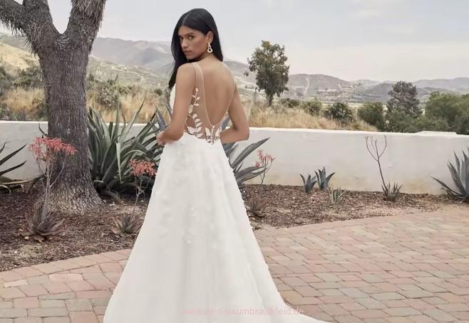 Ärmelloses A Linie Brautkleid Hellena mit Tüll Schleppe und Spitze