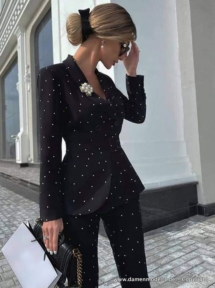 Business Hosenanzug Elegant in Schwarz Mit Perlen Bestickt