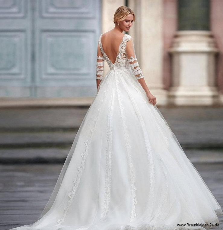 Elegantes A Linie Brautkleid Felizitas mit Dreiviertel Arm und Spitzen Ausschnit