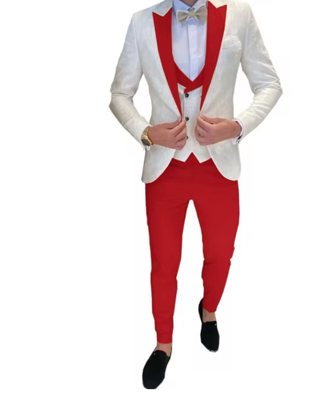 Arendt men’s suit for the groom and wedding guests in red and white, three-piece.