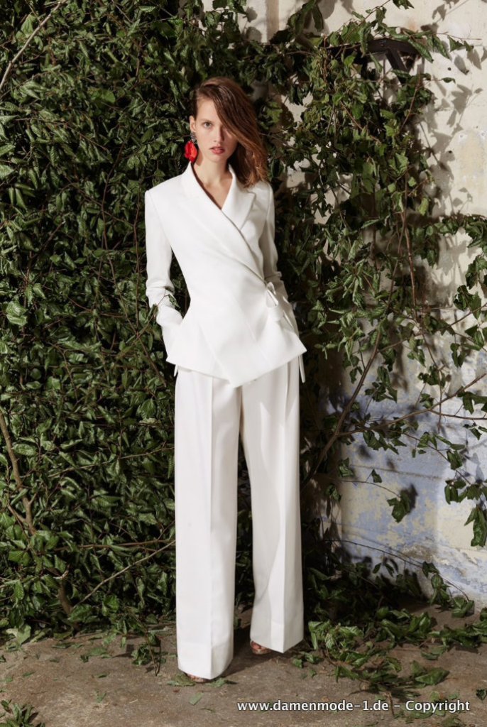 A Linie Business Hosenanzug in Weiß Festlich mit Wickel Blazer
