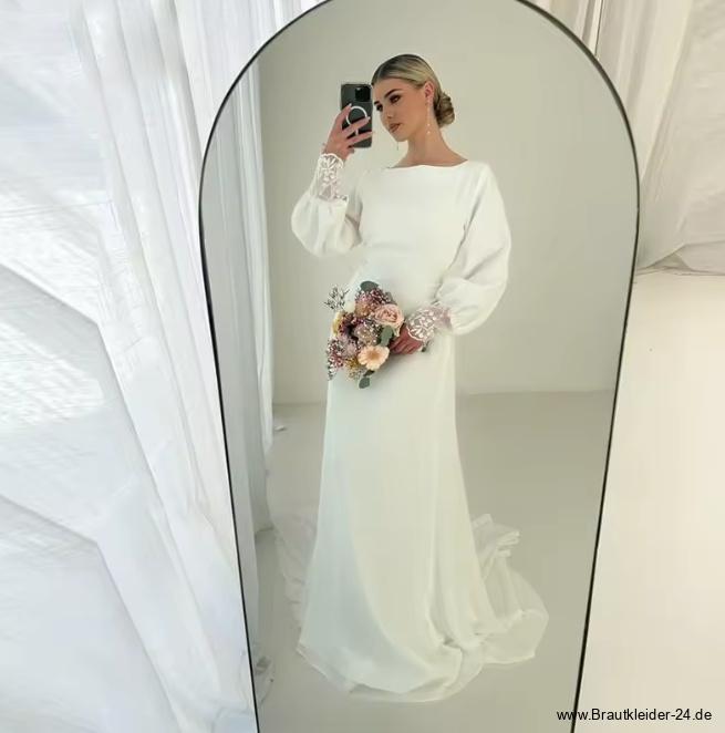 A-line clean chic wedding dress Fabia with sleeves and train