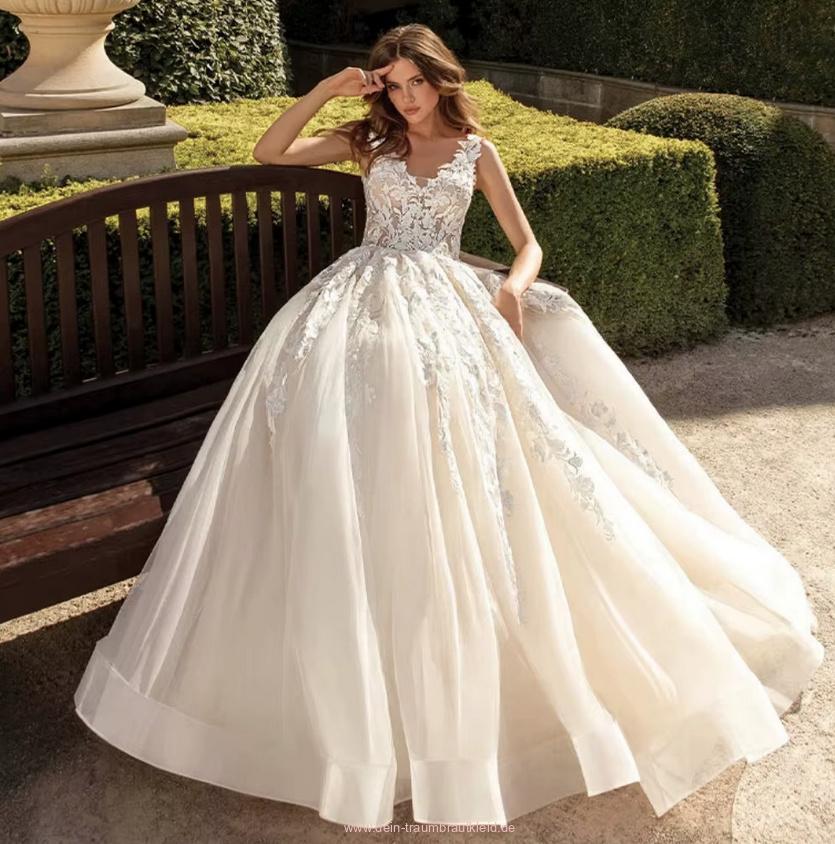 Prinzessin Brautkleid Danuta mit Blumen Spitze und Rücken Ausschnitt