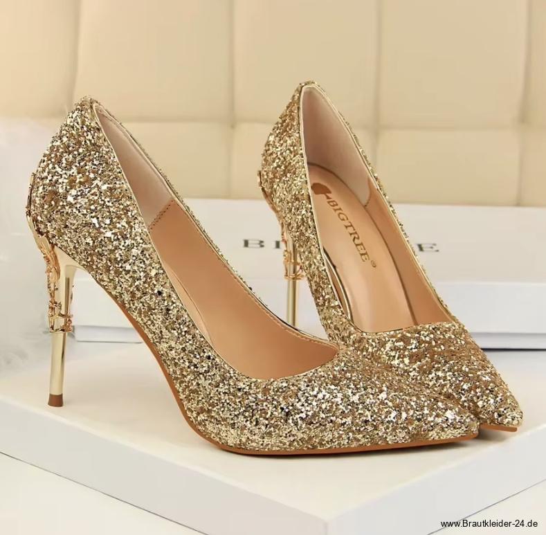 Glitzer High Heels Brautschuhe Enna 9,5 cm in Gold