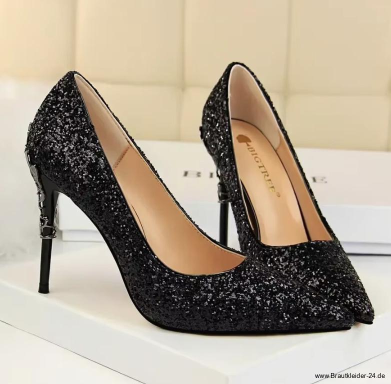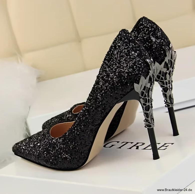 Glitzer High Heels Brautschuhe Enna 9,5 cm in Schwarz
