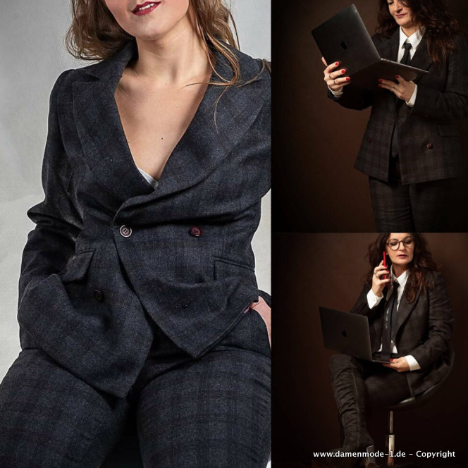 Business Hosenanzug in Schwarz aus Wolle Kariert