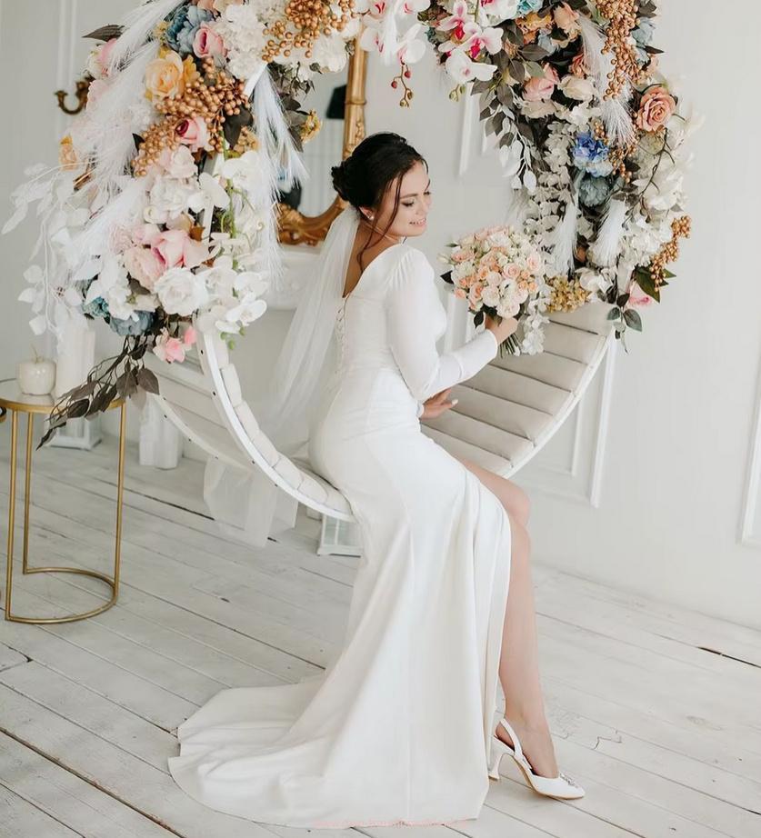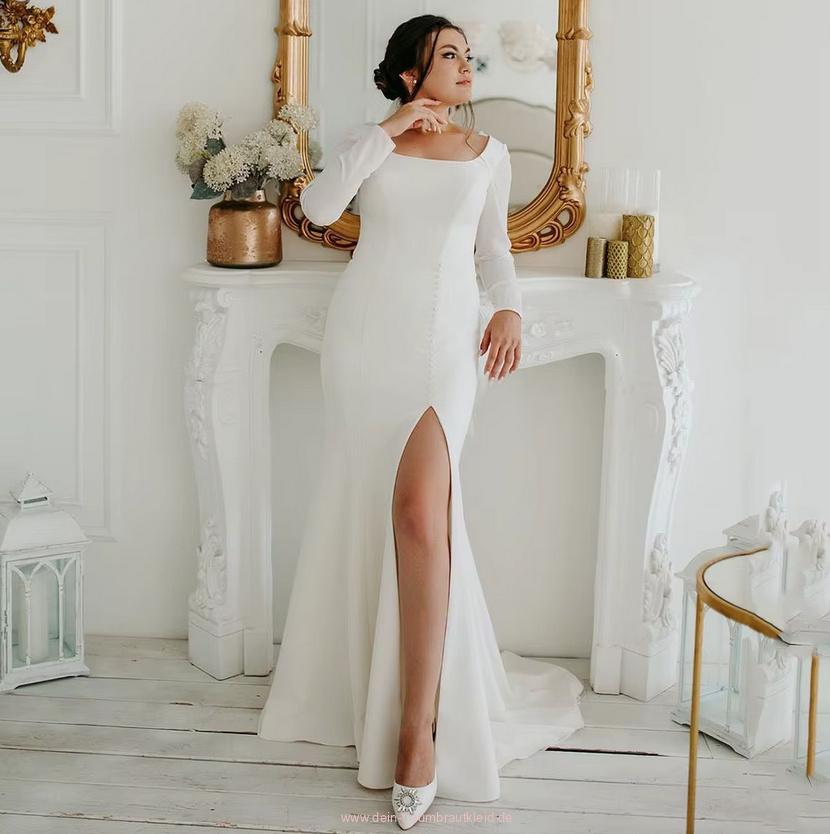 Fit and Flare Brautkleid Devi mit Sexy Schlitz und Schleppe