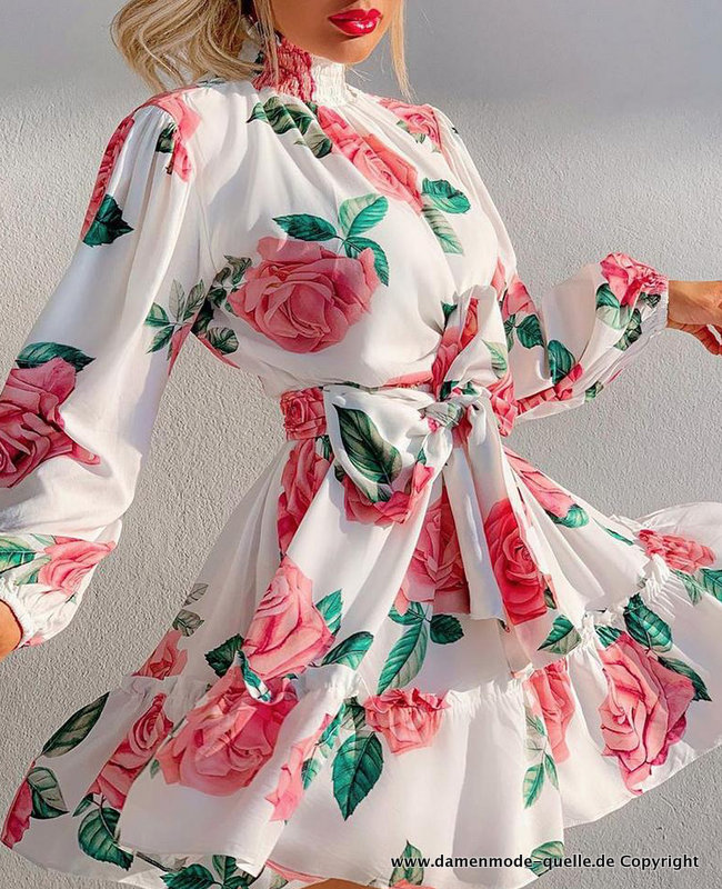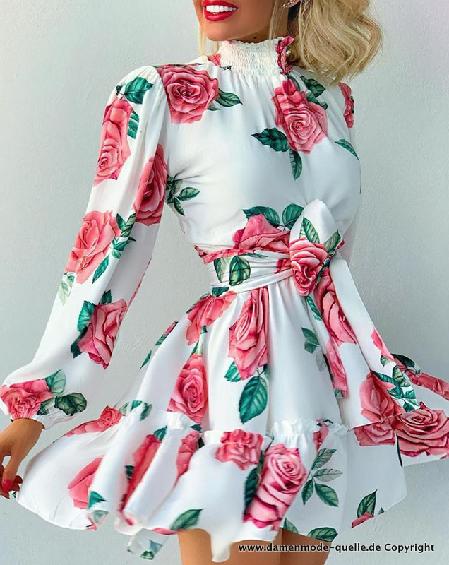 Floral Print Turtleneck Long Sleeve Mini Dress