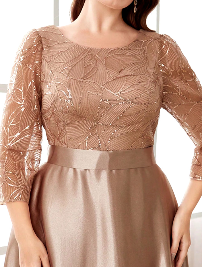A Linie Langarm Maxikleid Elegant für Hochzeitsgäste in Champagne mit Rundhals Ausschnitt
