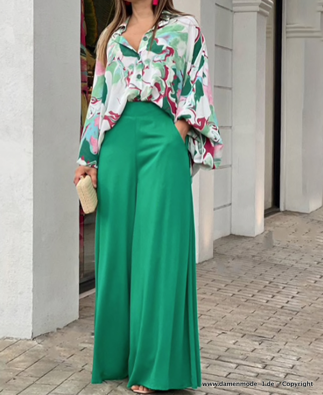 Elegantes Damenoutfit Zweiteiler in Grün mit Blumenmuster