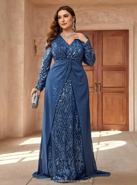 I Linie Langarm Pailletten Abendkleid Elegant für Hochzeitsgäste in Blau