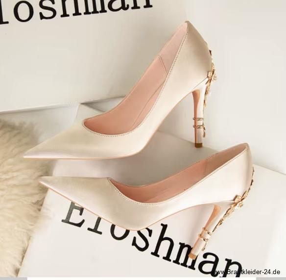 Luxus Blumen High Heels Hochzeitsschuhe Fibi Champagne