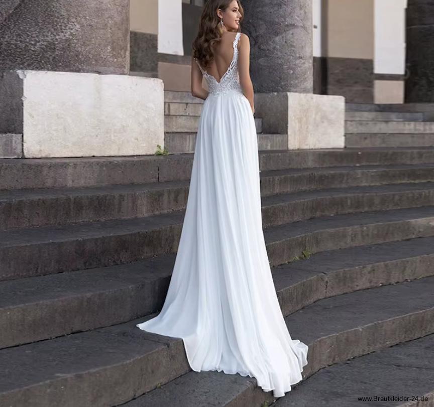 Spaghettiträger Empire Chiffon Brautkleid Felicitas mit Spitze und Schleppe