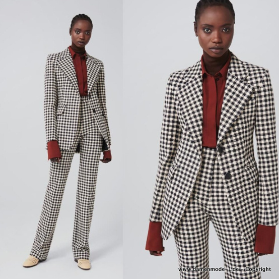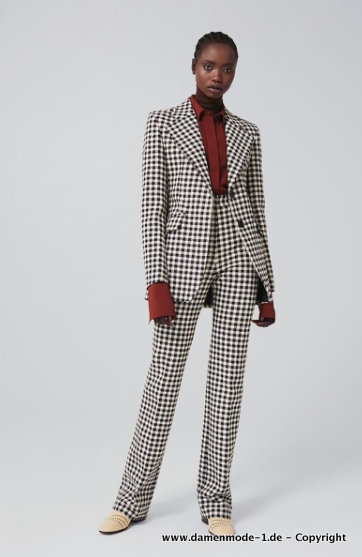 Warmer Business Hosenanzug in Schwarz Weiß Kariert
