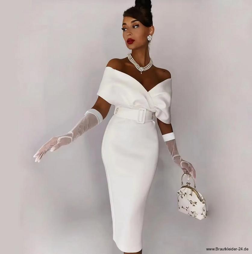 Schulterfreies Bleistift Standesamtkleid Fijara Knielang in Weiß