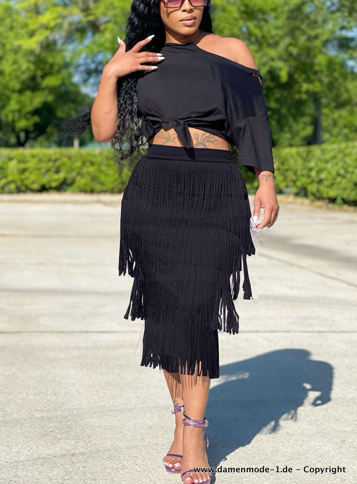 Sommeroutfit in Schwarz Rock mit Bluse im Set