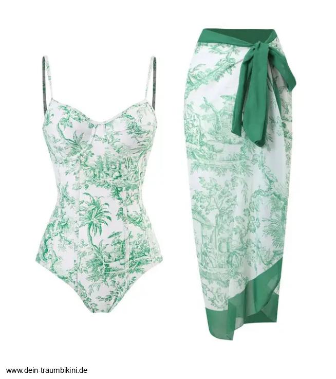 Spaghettiträger Badeanzug Zorana mit Blumenmuster und Rock im Set