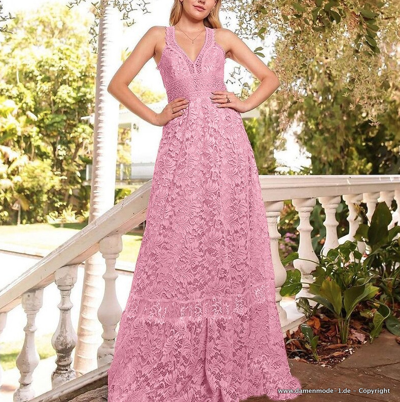 Elegantes Sommerkleid Lang in Rosa aus Spitze