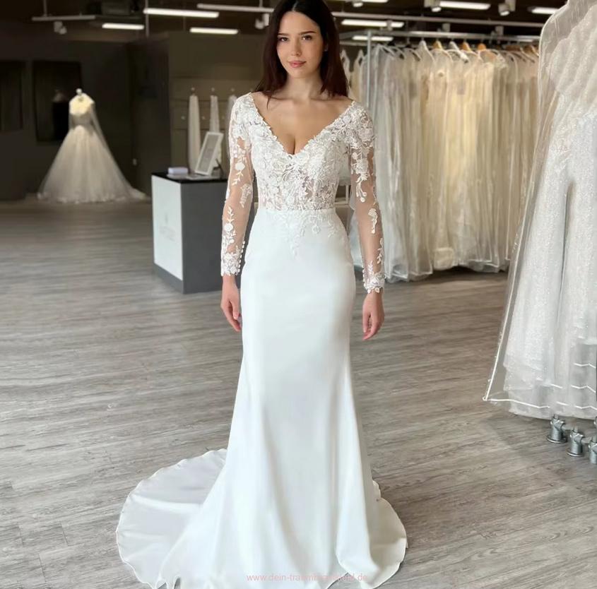 I Linie Brautkleid Davinia mit Ärmeln aus Spitze und Schleppe