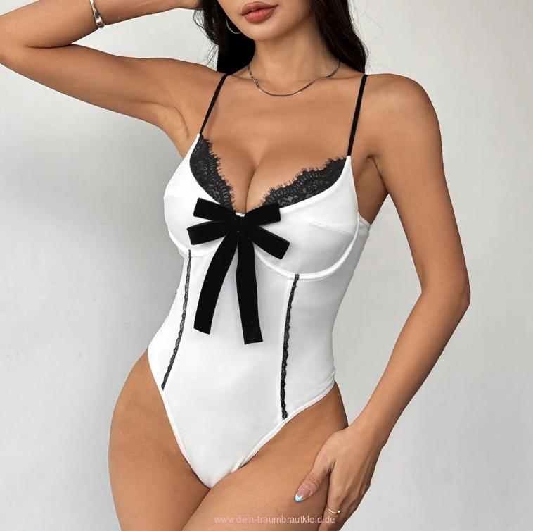 Spaghettiträger Body Hedi für die Braut mit Applikationen in Schwarz