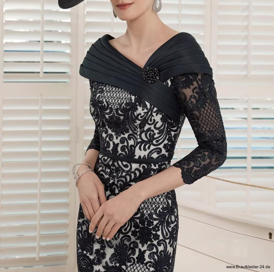 Bleistift Brautmutterkleid Friederike mit Ärmeln aus Spitze Wadenlang in Schwarz